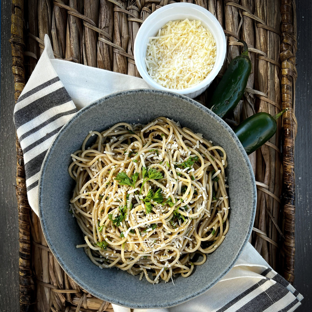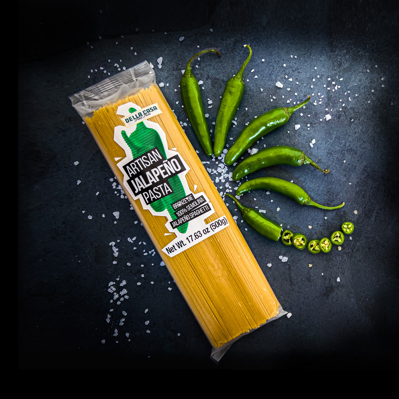 Our Jalapeño Pasta is a fan favorite, celebrated for its bright flavor and mild spicy kick that adds just the right amount of heat to elevate any dish. Originating from Mexico, the jalapeño chile is a staple in both traditional and contemporary cuisine, found in everything from street vendor classics to restaurant specialties. Known for its unique taste and moderate spice level, this pasta brings the vibrant essence of Mexican culinary heritage to your table. Whether you’re looking to add a touch of warmth to your meals or spice up your culinary adventures, Jalapeño Pasta is the perfect choice to bring authentic flavor and Spice Up your life!