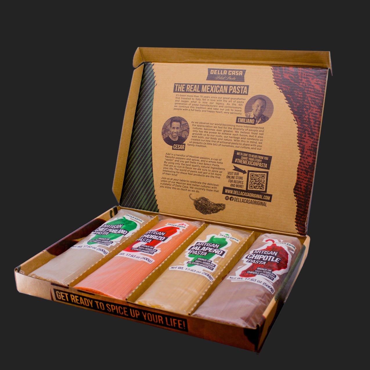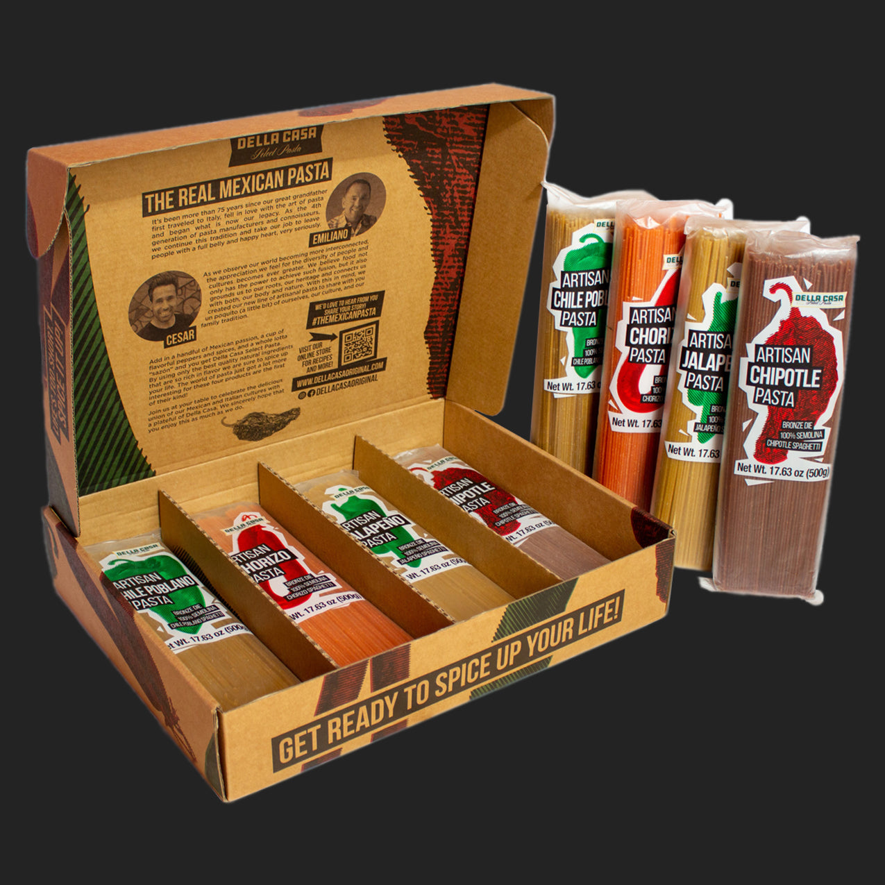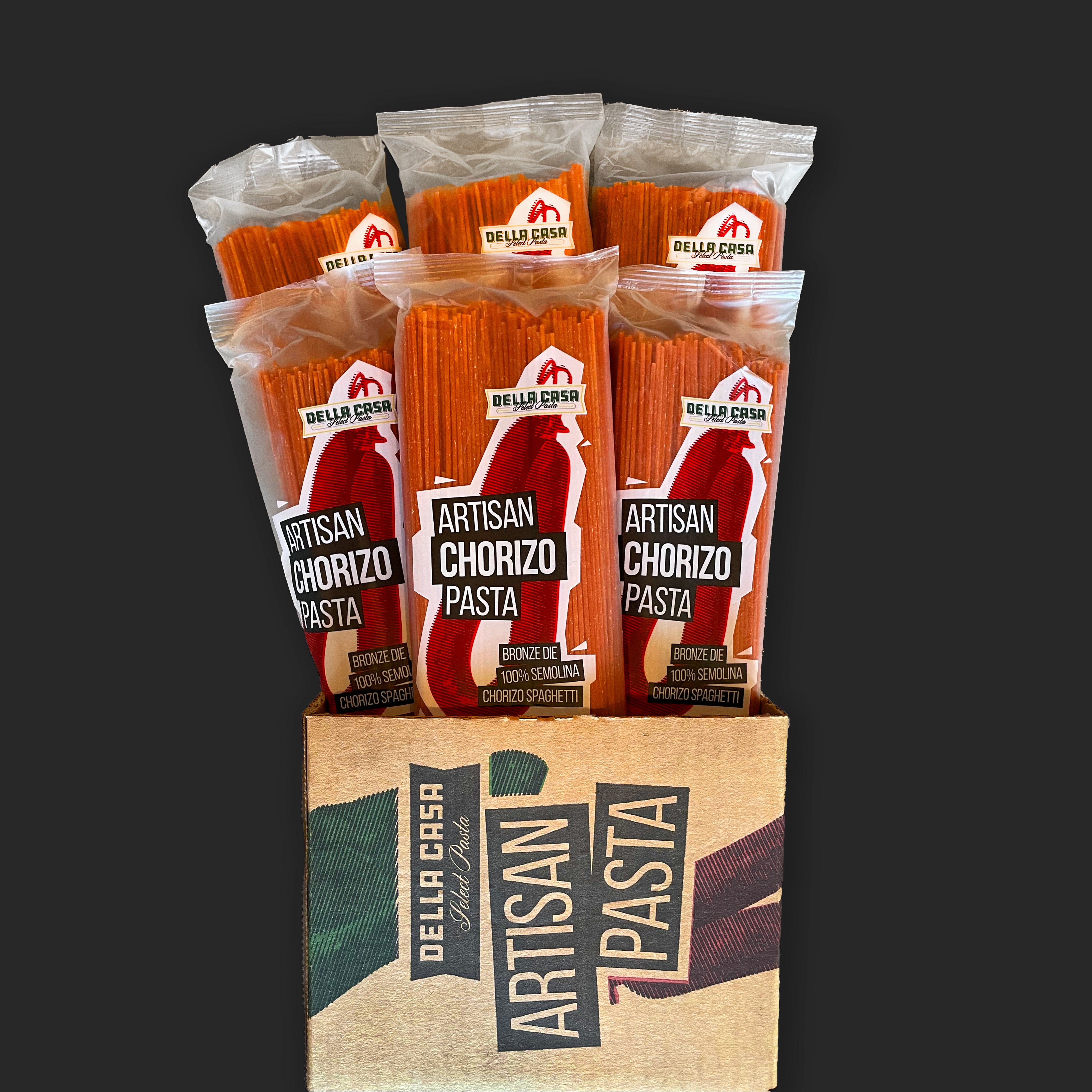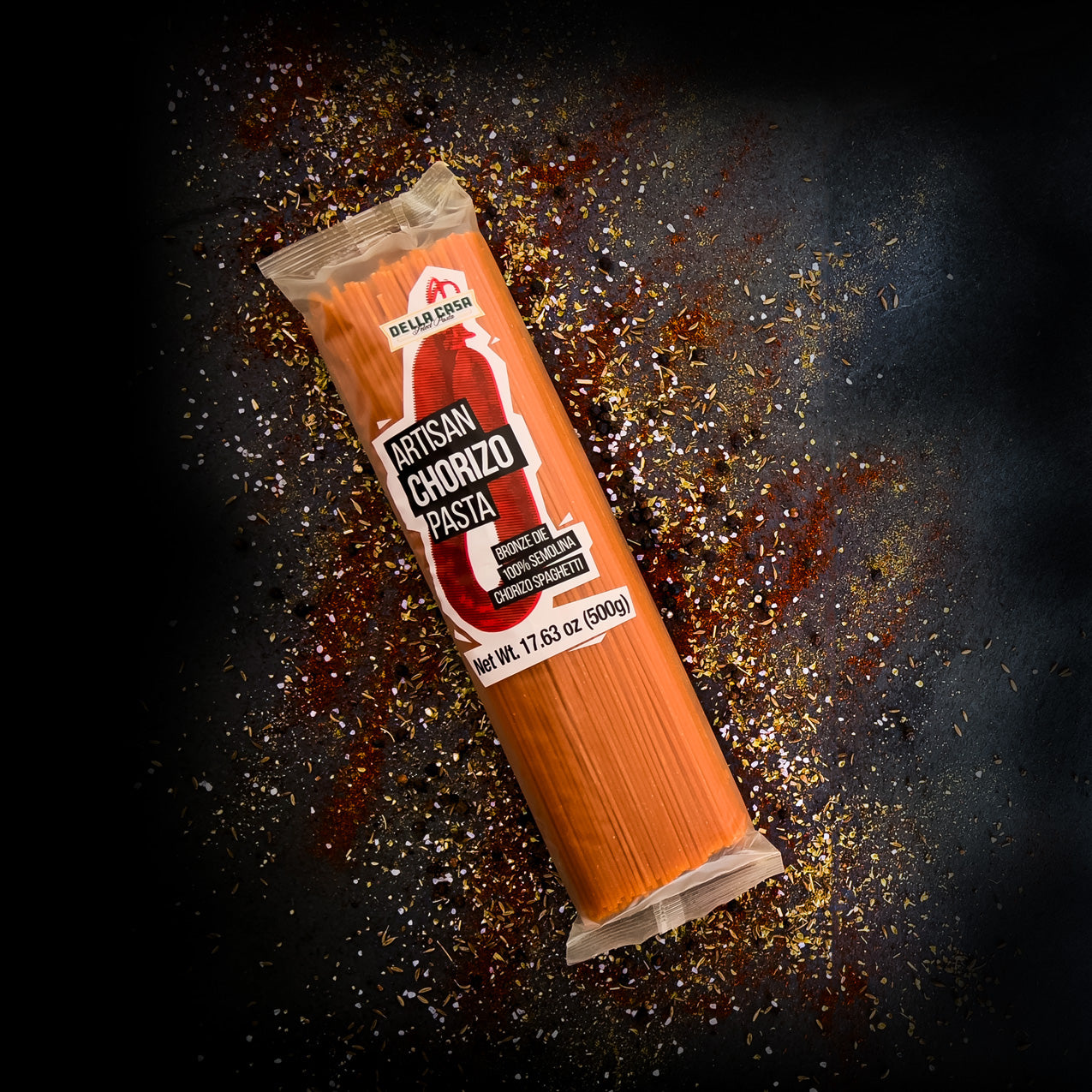 Our Chorizo Pasta pays homage to a rich culinary tradition that dates back to the Aztec empire, evolving further when Spanish conquistadors introduced new flavors to Mexico. This pasta captivates the senses with its deep, earthy taste, crafted from a blend of black peppercorns and guajillo peppers. The smoky, brick-red hue comes from paprika, adding both color and depth to this flavorful pasta. The result is a rich, savory experience that embodies the authentic taste of Mexican chorizo, offering a perfect balance of spice and smokiness that elevates any dish.